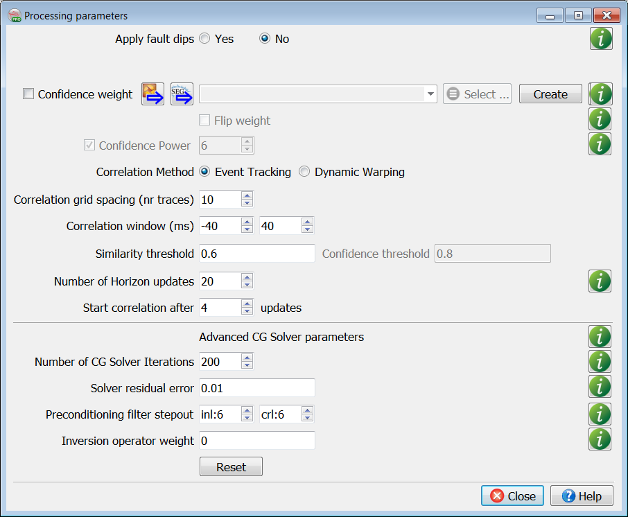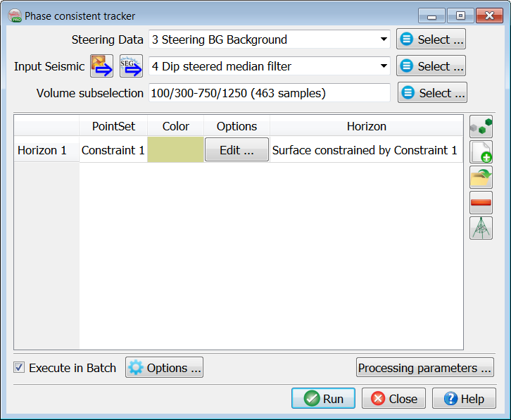 Seeds can be added or removed thereafter regardless of the origin of the pickset, either interactively or using the table editor under the Edit options. At least one seed is required for each horizon to be tracked using this tracker.