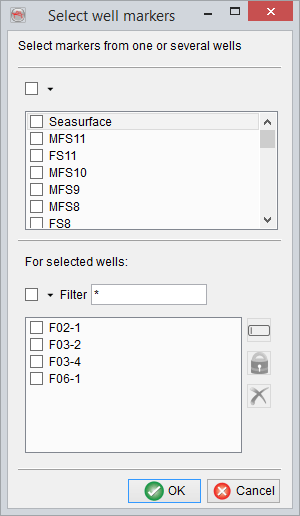 Multiple markers from multiple wells can be selected in the Select well markers window