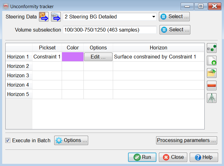 Seeds can be added or removed thereafter regardless of the origin of the pickset, either interactively or using the table editor under the Edit options. At least one seed is required for each horizon to be tracked using this tracker.