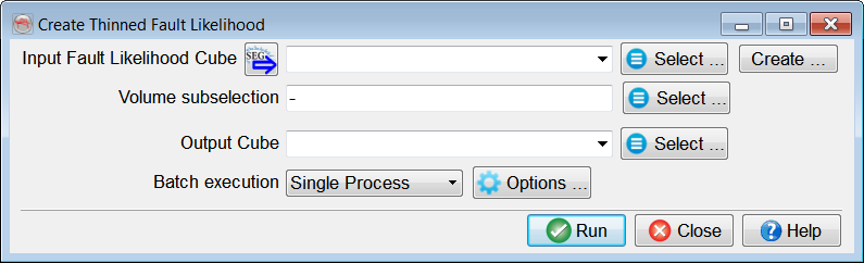 Input Fault Likelihood Cube: Select or Create a Fault Likelihood Volume.