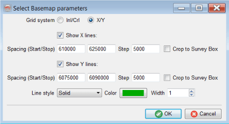 To add grid lines on the basemap, this element is used. Grid lines and their annotation can be based on inline / crossline steps or XY spacing.