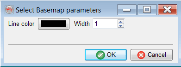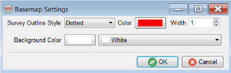 The settings sub-menu is used to change the outline style (line pattern, thickness, and color) of the current basemap. The default background color is white, which can also be changed, if needed be.