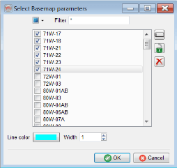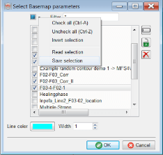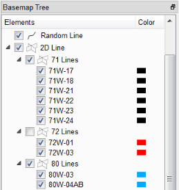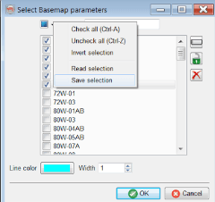 Selected 2D lines can be added in the basemap via the right-click menu (Basemap Tree > 2D Lines > Add). For future use, you may save the selection using the menu available at the top level (a drop-down arrow). This is identical to saving a selection list for the random lines (as mentioned above).