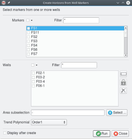 Selecting more than one markers will result in creating several horizons at a time. The output horizon will be saved to the database under the name Horizon From *selected marker*.