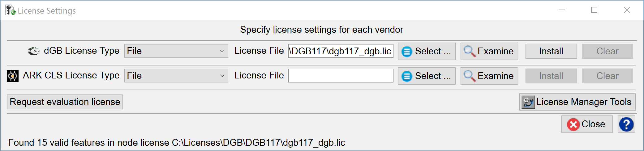 Clicking the option Install/Edit licenses... will bring up the following tool: