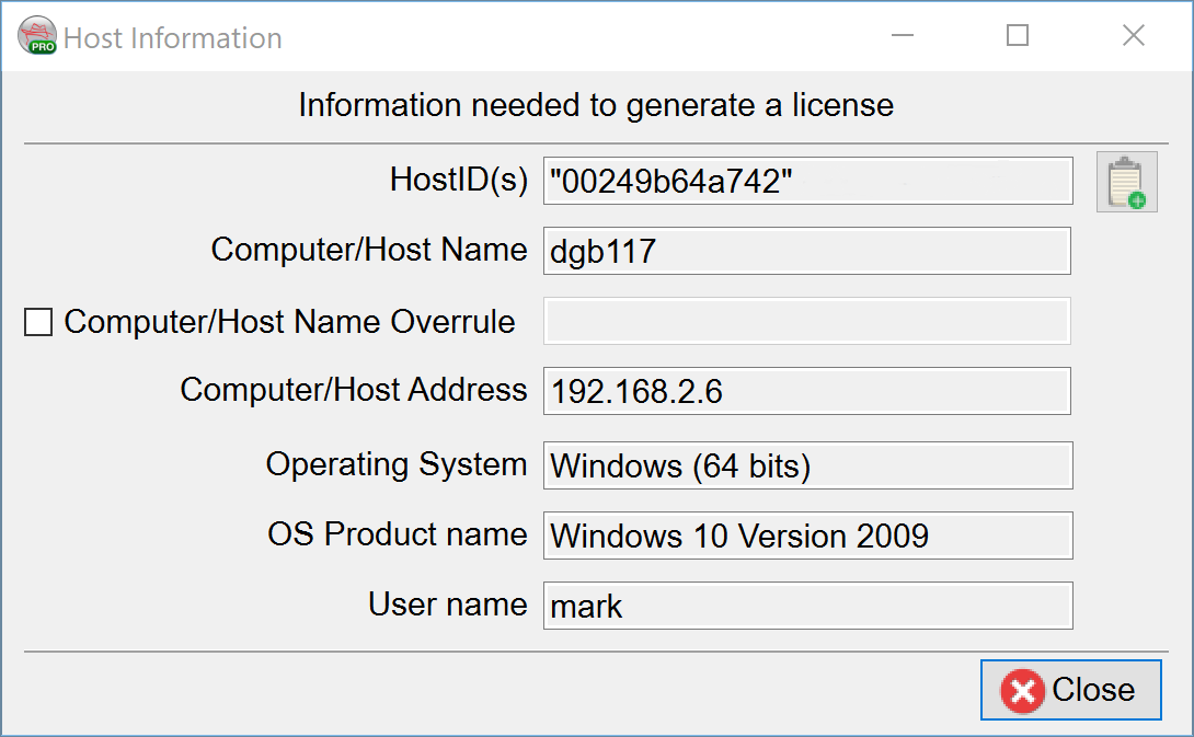 In order to generate a license, we need the HostID (commonly known as MAC address) of the machine or server, depending on license type: