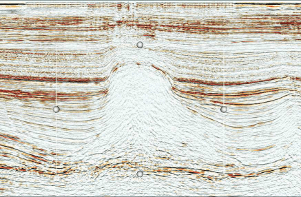 In general, the NN SaltCube tends to pick up both salt layers and salt diapirs. In the example below, the bottom of the salt is very well resolved.