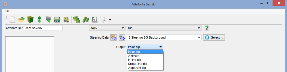 Description: The inline and crossline dips of a SteeringCube are transformed to the requested Output type (Polar dip, Azimuth, Inline dip, Crossline dip). When the SteeringCube was computed from seismic data sampled in time, the dips in a SteeringCube are apparent dips (slowness), and the returned attribute will also represent apparent dips. To compute real dips, please use the dip angle attribute.