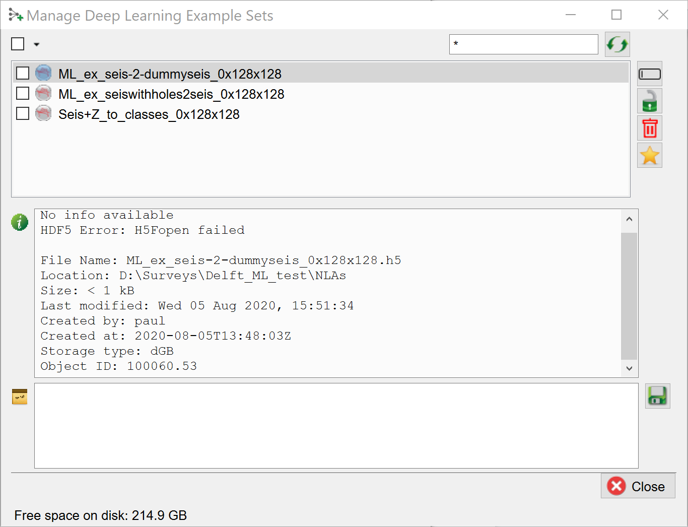 Training Sets can be managed in the “Machine Learning Deep Example Sets” window that is launched from all windows with a “Manage Example Sets” icon