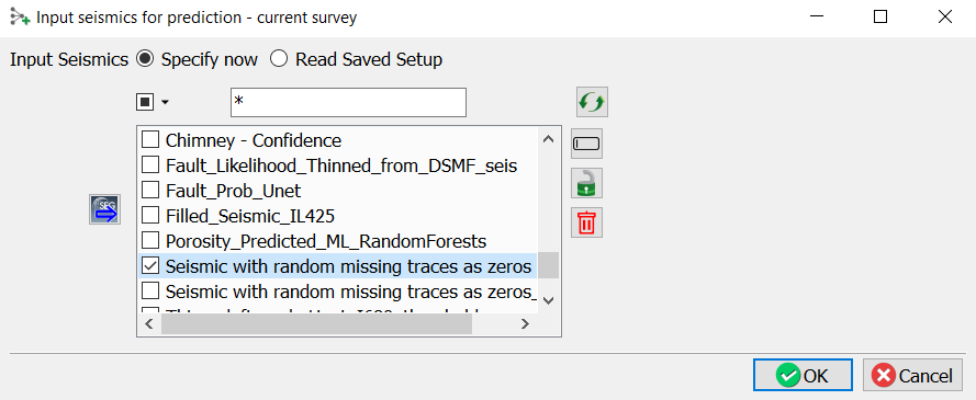 When you are done press Proceed (Input Data Selection). The “Input seismic for prediction” window pops up.