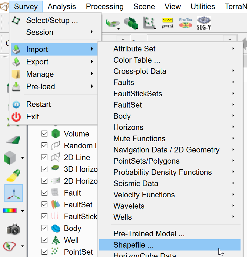 Select your .shp file, choose the specific settings, name your file (if different) and import.