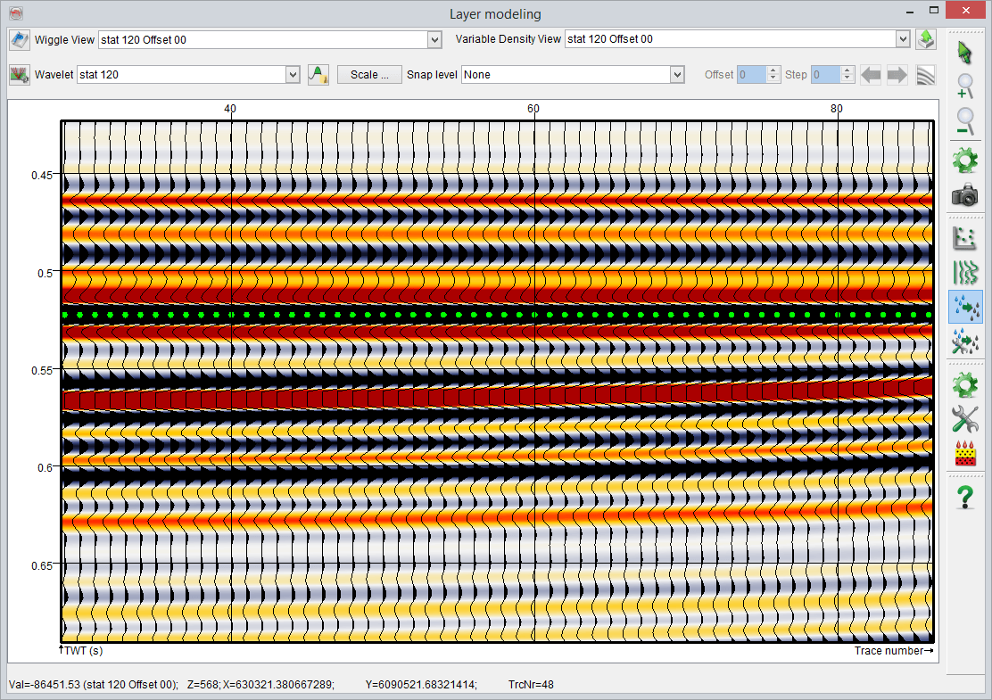 from the vertical list of icons on the right side pane, in the layer modeling window, to specify the fluid replacement parameters for various layers with fluid content.