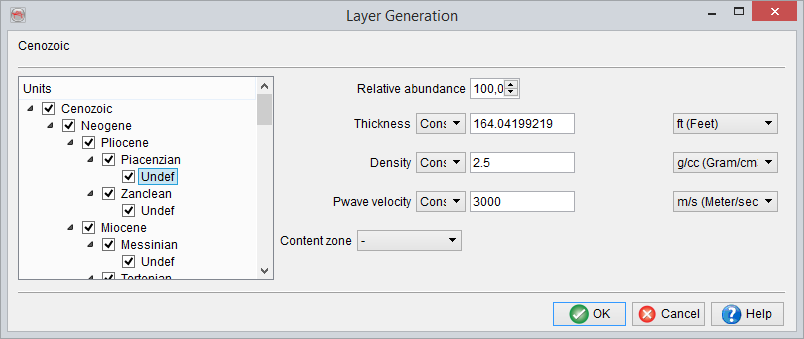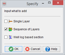 - Single layers, one lithology of a given formation. This is useful only if you want to insert a single, most often thick, blocky formation into the modeling.