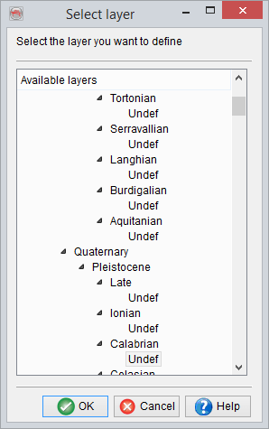 The modeling description is typically composed of a number of nodes that are added in a given order in the layer description. The nodes are taken from the current stratigraphic framework, thus this framework must first be filled with the formations and lithologies that will be used during the modeling, prior to the modeling.