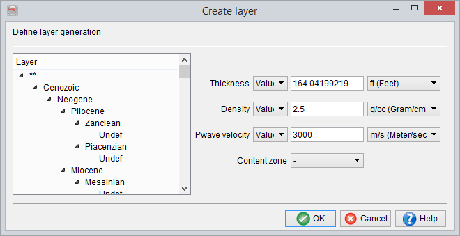 First of all, the Layer Succession has to be defined and will be used to create the pseudo-wells.