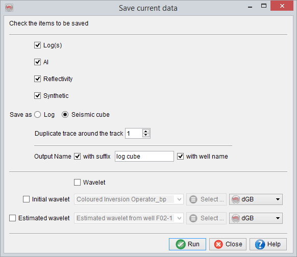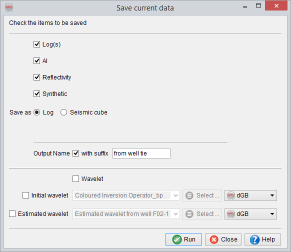 A secondary output of the synthetic-to-seismic tie is the estimated wavelet, that is estimated at any time and must be saved explicitly.