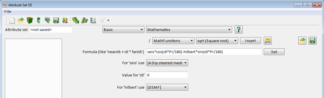 - It applies the formula: seis*cos(c0*PI/180)-hilbert*sin(c0*PI/180)
