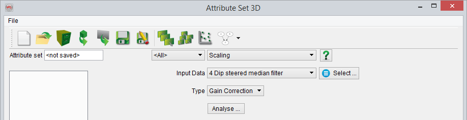 This attribute is used to correct for any undesirable gain applied previously or to apply a new gain function on the seismic data. This is applied by first selecting the input data for gain correction and clicking on Analyse button.