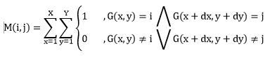 In this equation G(x,y) are the center sample points and G(x+dx, y+dy) are the neighboring sample points. Usually, the distance between center and neighboring samples is one, but in general greater distances could also be taken for the calculation. It is, in principal also possible to combine the four principal directions to form an average GLCM. By this approach the spatial variations can be eliminated to a certain degree (Gao 2007). In the case of 3D data the number of possible directions increases to 13. The 3D case implies a modification of the above given equation: