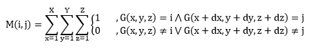 Similar to the 2D case, it is possible to calculate the GLCM in single directions, to combine several directions, or to calculate an average GLCM. Previous works on 3D GLCM calculation use 2D GLCM calculations in various directions and combine the results of these calculations to form a pseudo-3D GLCM attribute cube.