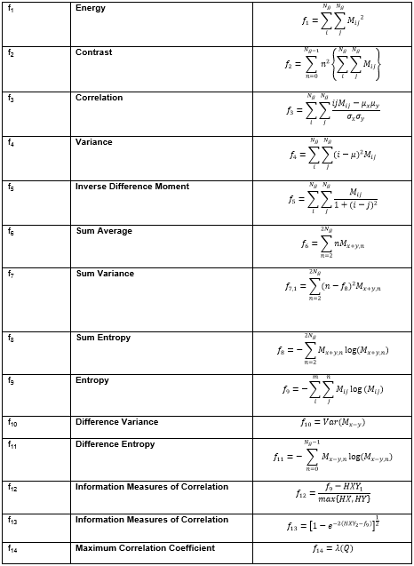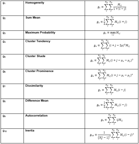 In total 23 GLCM-based attributes can be calculated (see below in Mathematical description)