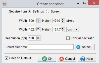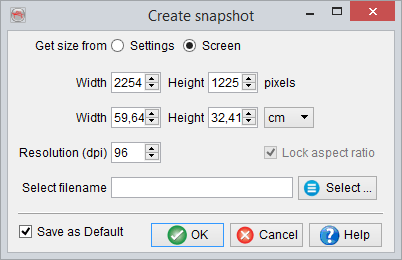 You can change the image properties e.g. height, width, resolution etc. If you save the settings, they will appear by default in all sessions next time you grab new snapshots. The 'Screen' parameters correspond to the parameters of the picture as displayed on your screen.
