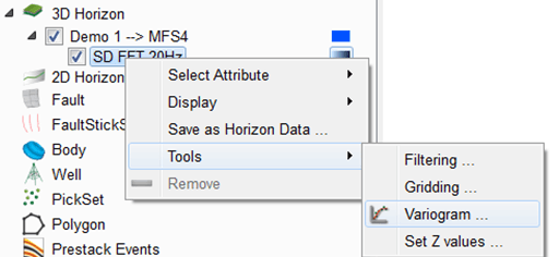 For any horizon data displayed on a horizon, a horizontal variogram can be computed: