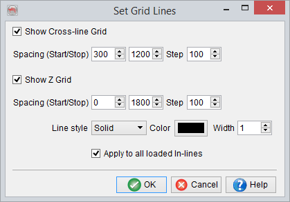 Gridlines: Enables displaying grid lines on the particular element. A new menu appears where the grid line spacing, style, color and width can be set.