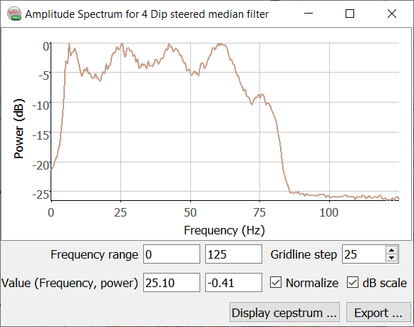 Show Amplitude Spectrum: Amplitude vs frequency plot will be shown in pop up window. Moving the mouse over the spectrum displays the Values.