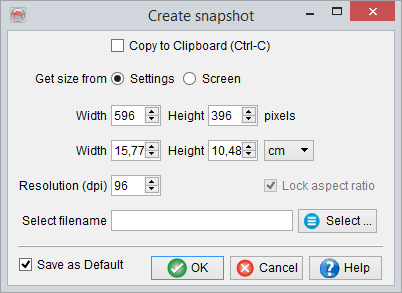 Pressing Ctrl+P in either the Histogram, Amplitude- or F-K Spectrum windows pops up a settings window where you may define parameters for a snapshot: