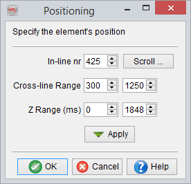 Positions: Change an inline/crossline/Z-slice number. This option is used to manipulate (sub-select a range of traces/time) a line or to quickly scroll through the data for visualization.