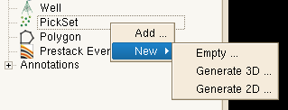 The drop down menu gives the option to Add… an existing pointset or to create a New one. The new pointset will either be manually picked in the 3D scene or automatically generated.