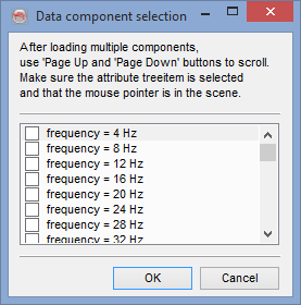 Whenever displaying a multi-component attribute volume on an inline/crossline, the component selection dialog box (below) will pop up. In this dialog one or more outputs to be displayed on the same section must be selected.