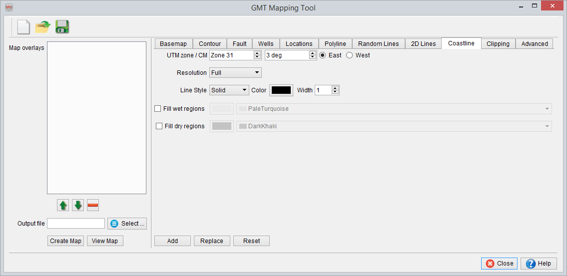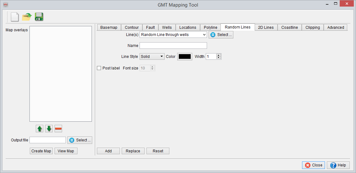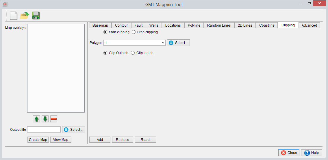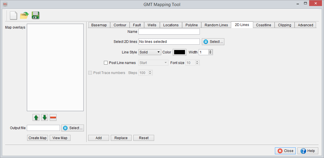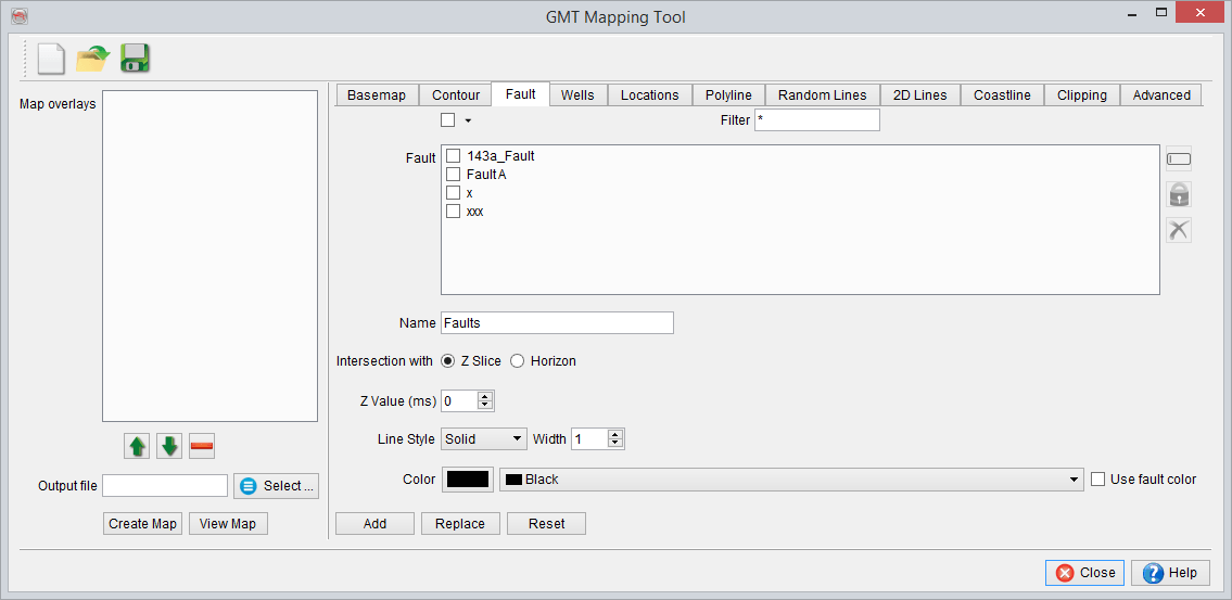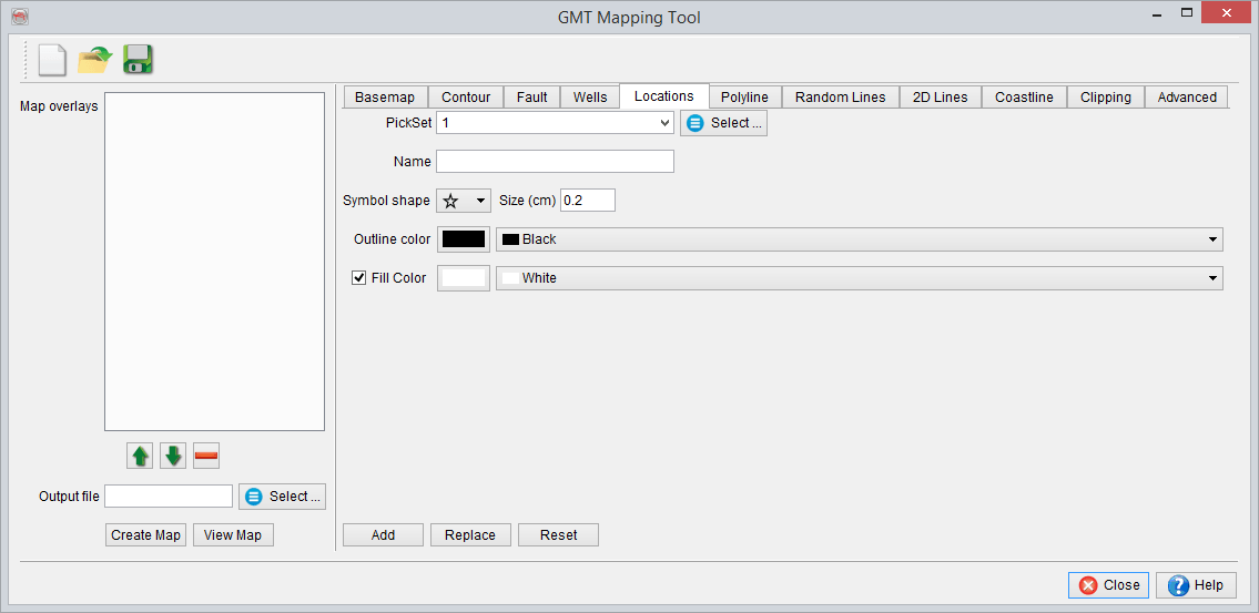 For all the sections it is possible to Reset the parameters and thus go back to the default ones. For all the section (except Basemap), Add will add the defined object to the map overlays and Replace will update it if the object has been previously defined.