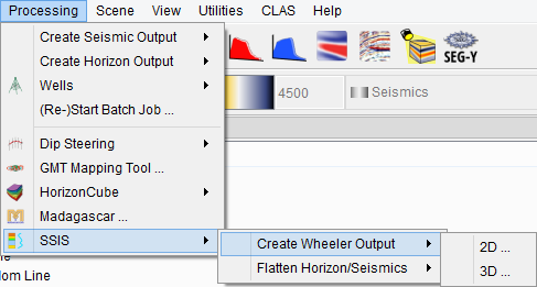 The Wheeler Scene in OpendTect is another scene, which is added from the SSIS menu. It may be noted that the Wheeler Scene is a transformation (flatenning) of HorizonCube into relative gelogical time (RGT). Therefore, before adding a Wheeler Scene, the HorizonCube should be selected.