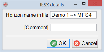 - pre-defined GeoFrame IESX (3d_ci7m) format: Settings button appears and allows to change Horizon name in file and add Comment.