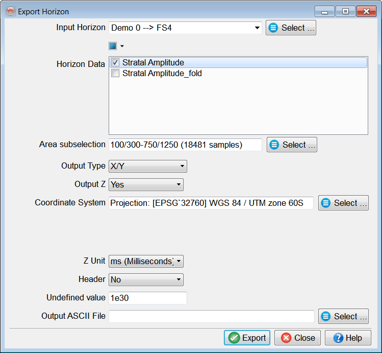 4.4.4.1 Export Ascii 3D Horizons