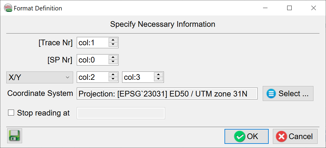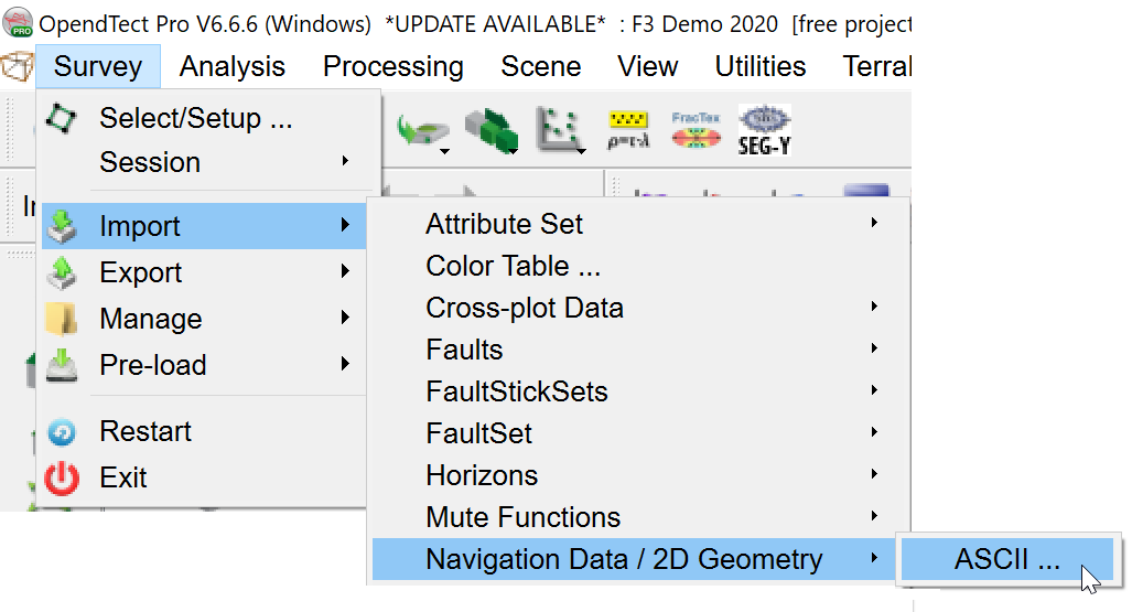 The import ASCII file should contain X, Y, trace number and, optionally, shot point number.