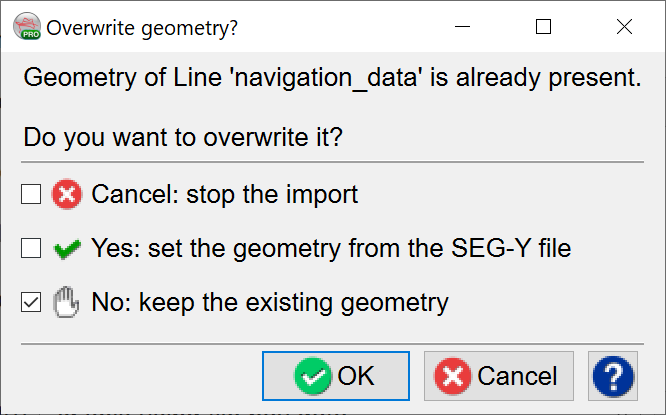 Select No: keep the existing geometry and click OK: