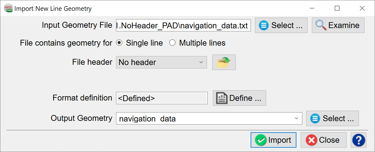 On this next screen, use the drop-down for the Line name field to select the just-imported navigation data and name the 2D Data before clicking Import: