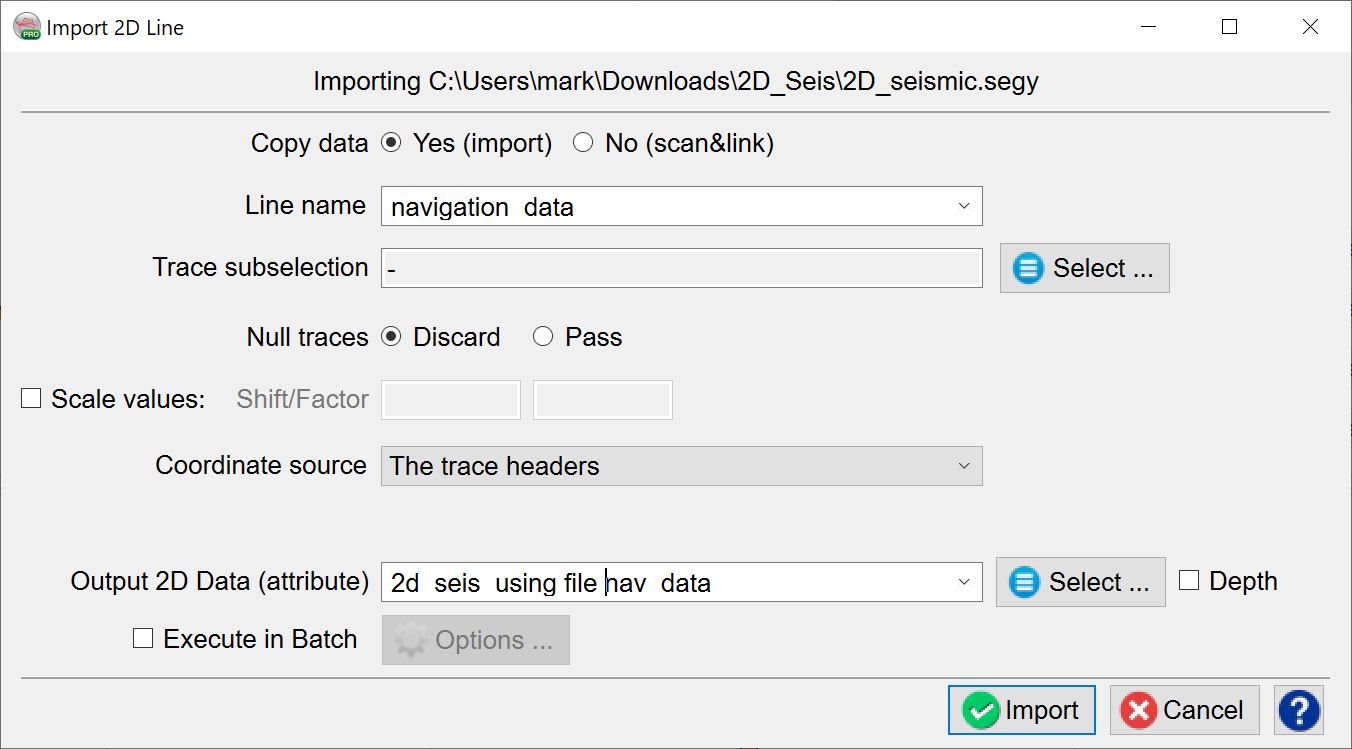 The user can then switch to importing the 2D SEG-Y file.
