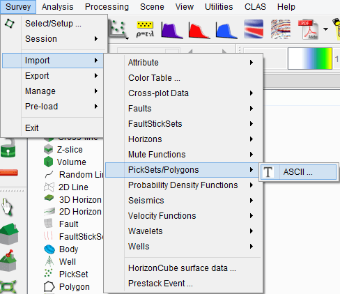 Point/vector data can be loaded in OpendTect from Survey > Import > pointset/Polygon.