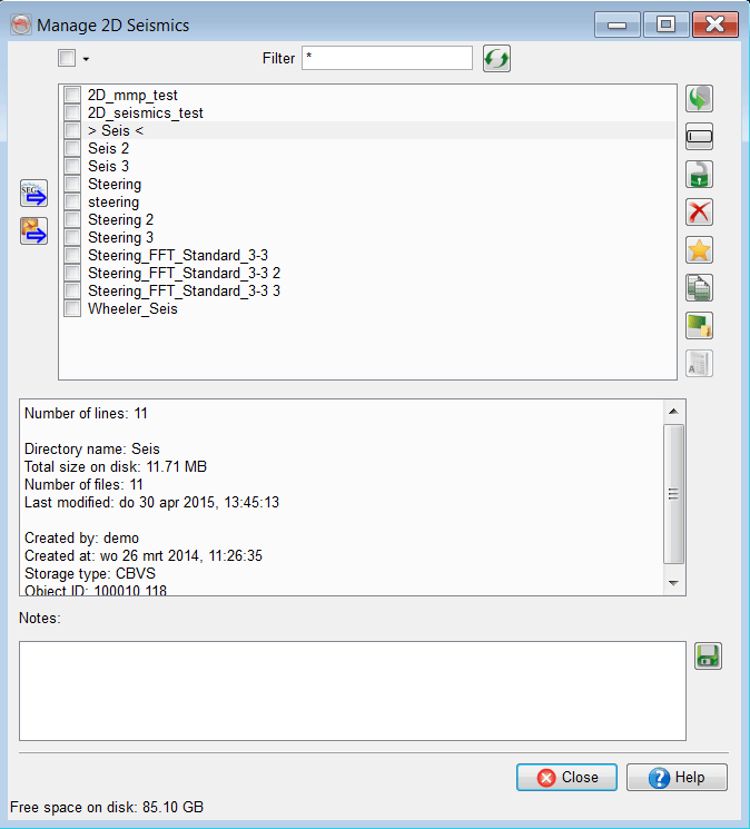 2D surveys in OpendTect are grouped in datasets. These datasets have their own manager (shown below), separate from the Manage 2D Seismic Lines window.