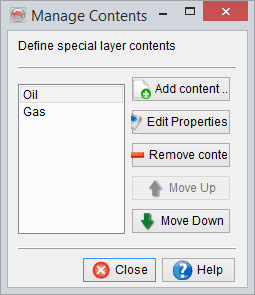 This option is used to define a set of fluid contents. Afterwards, fluid(s) from the list can be assigned to lithologies for each layer when defining Layer properties for Layer modeling.