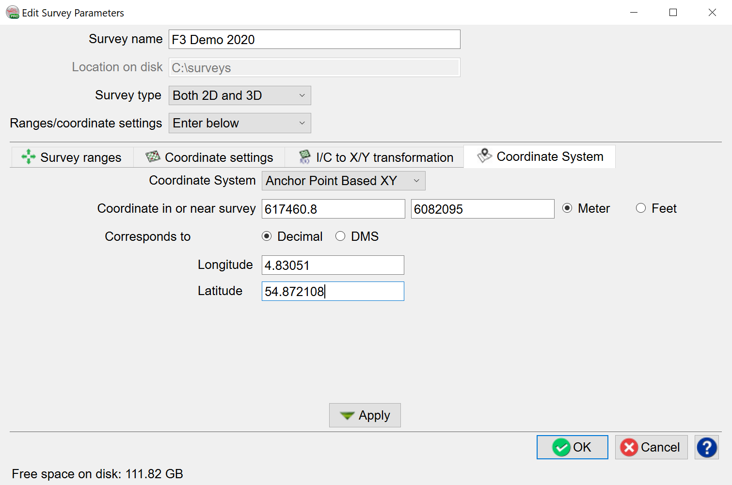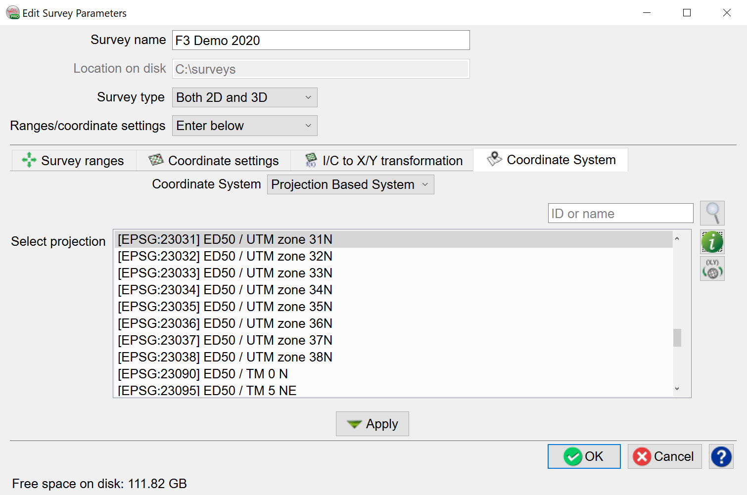 The Coordinate System of an OpendTect project can be defined in one of the three ways and will be applied to all data imported into the project: