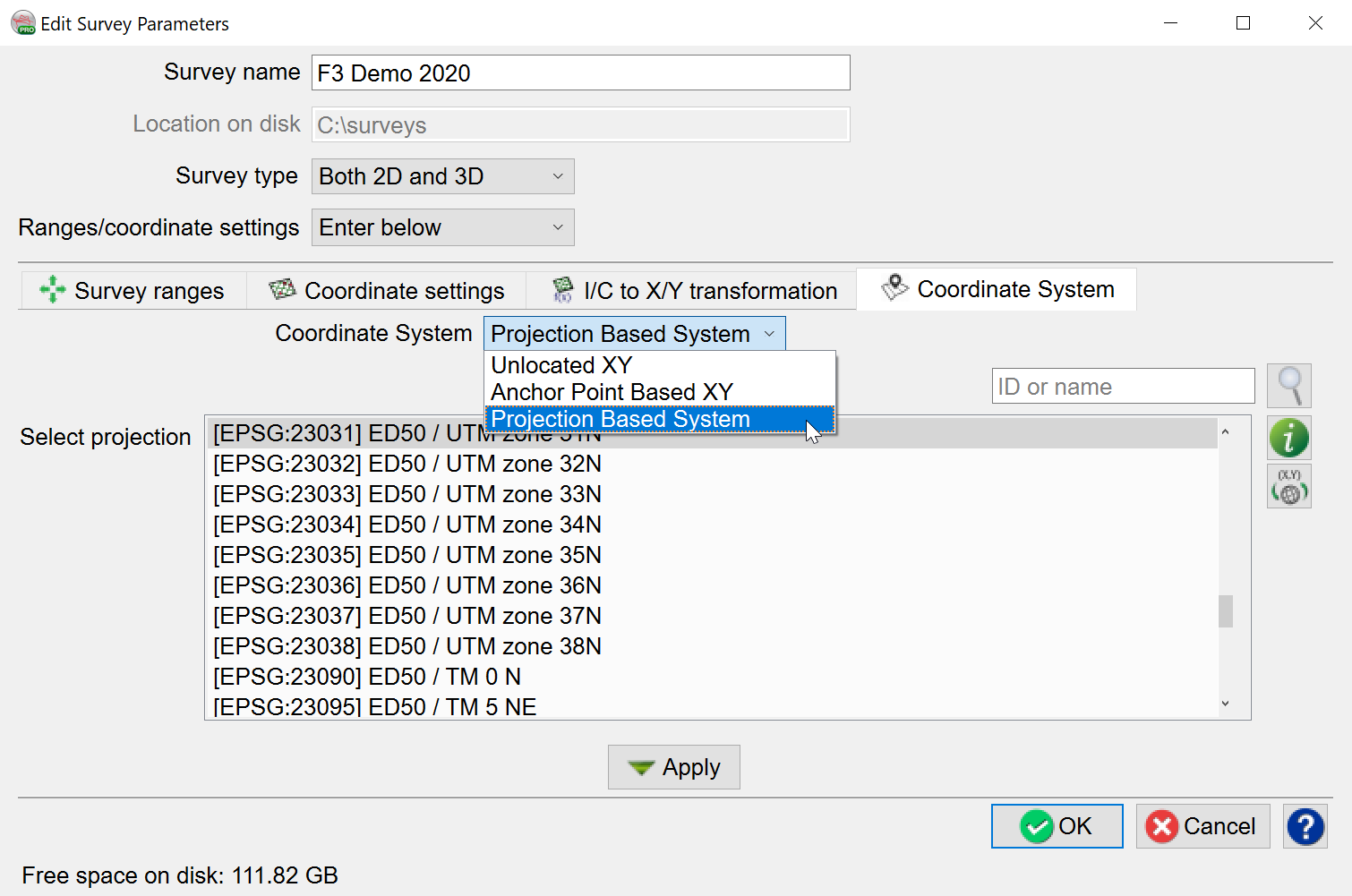 Project Based System can be selected when a coordinate system is known. The list of projections was created using Proj.4 filter function.: