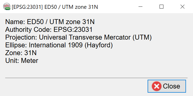 icon provides useful information about the selected projection: