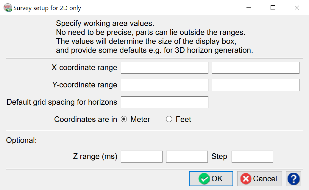 Initial setup: Determines how you set up the survey ranges and coordinates: