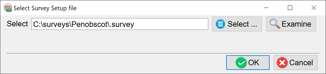 Read from Survey Setup file: copy the survey parameters from another survey using the Survey Setup file (.survey):