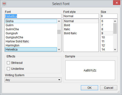 Clicking on any of the listed buttons brings up a standard font definition window:
